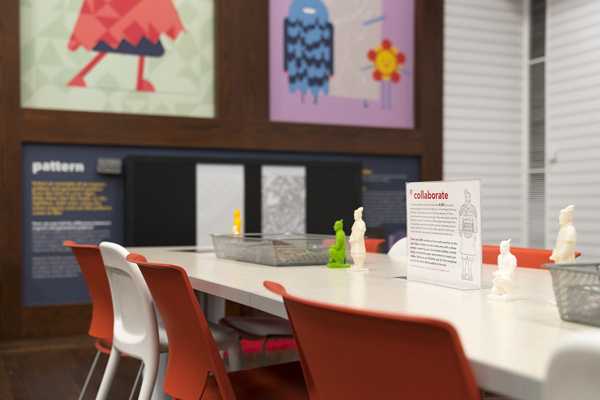 The Rosenthal Education Center (the “REC”) is a 2,300 sf art education center at the heart of the museum. The REC features studio space, a flexible multi-media interactive space, and a welcome zone with multiple portable electronic tablets and provisions for future technology. The success of both free and paid programs led to the creation of additional Arts Education Classrooms in the 2024 Community Spaces project. Adjacent to the REC, the renovated first floor East Galleries adds a series of flexible spaces for art that complete the eastern circulation loop from the Great Hall through Alms and Adams Emery Halls. This provides clarity of movement through this part of the museum complex.