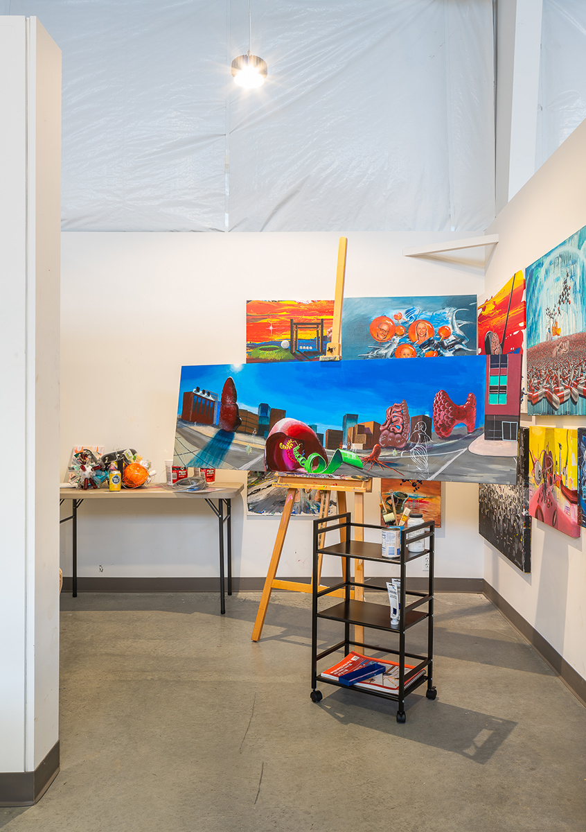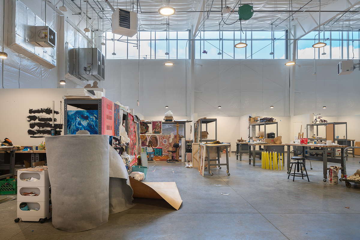 From the placement of the door to the central design, all aspects where intentionally considered. The main entry to the facility faces towards the main campus and the building is set back to respect the street character of Riddle Road. The central studio space is tall, open, and column-free with an industrial character illuminated by abundant daylighting from above and minimal eye level windows for occupants’ privacy. Small working studios surround the central design, allowing studio to maximize their creativity through collaboration or display collections of art.