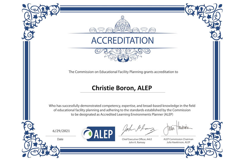 Christie Boron, Principal at emersion DESIGN and K-12 Client Leader, recently received the Accredited Learning Environments Planner (ALEP) designation. This is a mark of excellence developed to reflect the knowledge, skills, and abilities of an expert in educational facility design. Explore the details of what makes an accredited learning environments planner and see if your project could benefit from their engagement.
