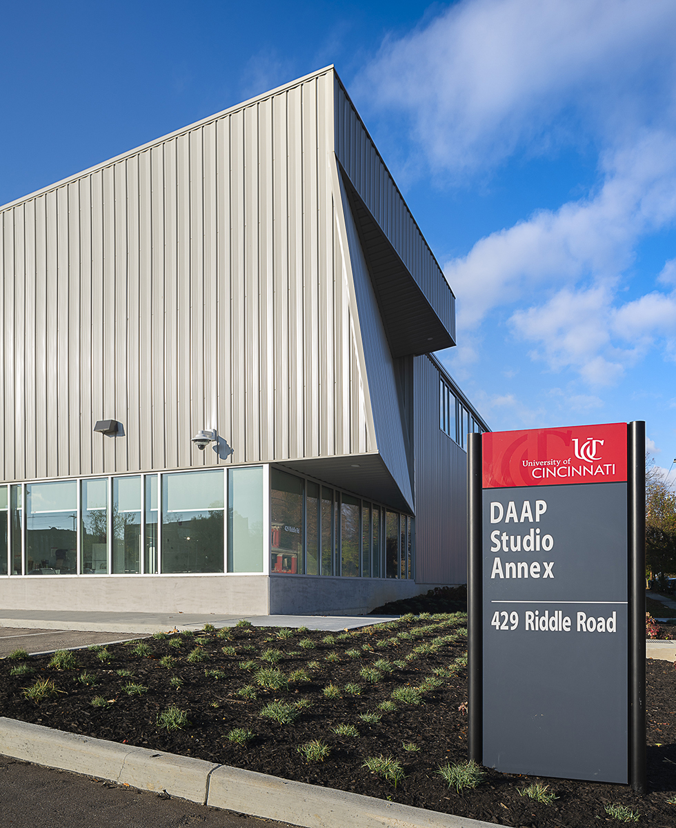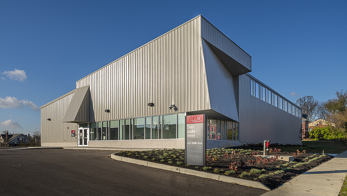 The University of Cincinnati relocated the DAAP School of Art Annex Space to a new facility of 12,000 sf with exterior studio space located along Riddle Road. The location of the facility, across Clifton Avenue from main campus, dictates the need to balance between being sensitive to the adjacent residential character while relating to the university’s thoughtful design reputation.