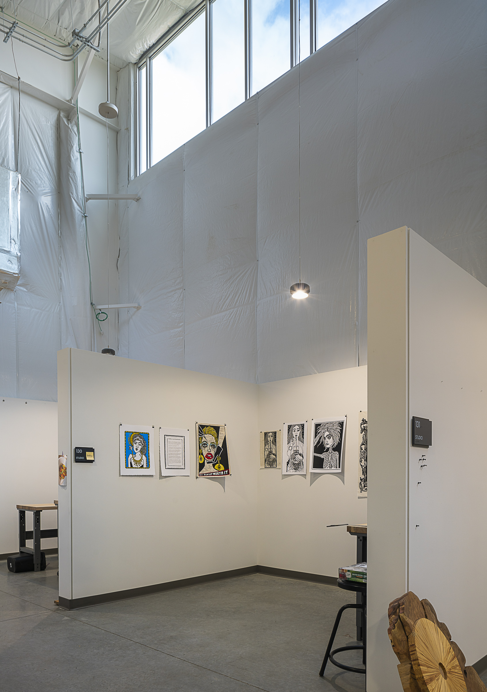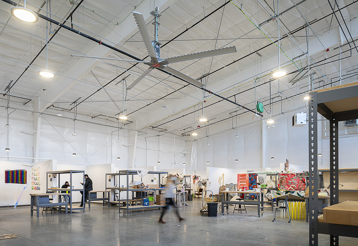 From the placement of the door to the central design, all aspects where intentionally considered. The main entry to the facility faces towards the main campus and the building is set back to respect the street character of Riddle Road. The central studio space is tall, open, and column-free with an industrial character illuminated by abundant daylighting from above and minimal eye level windows for occupants’ privacy. Small working studios surround the central design, allowing studio to maximize their creativity through collaboration or display collections of art.